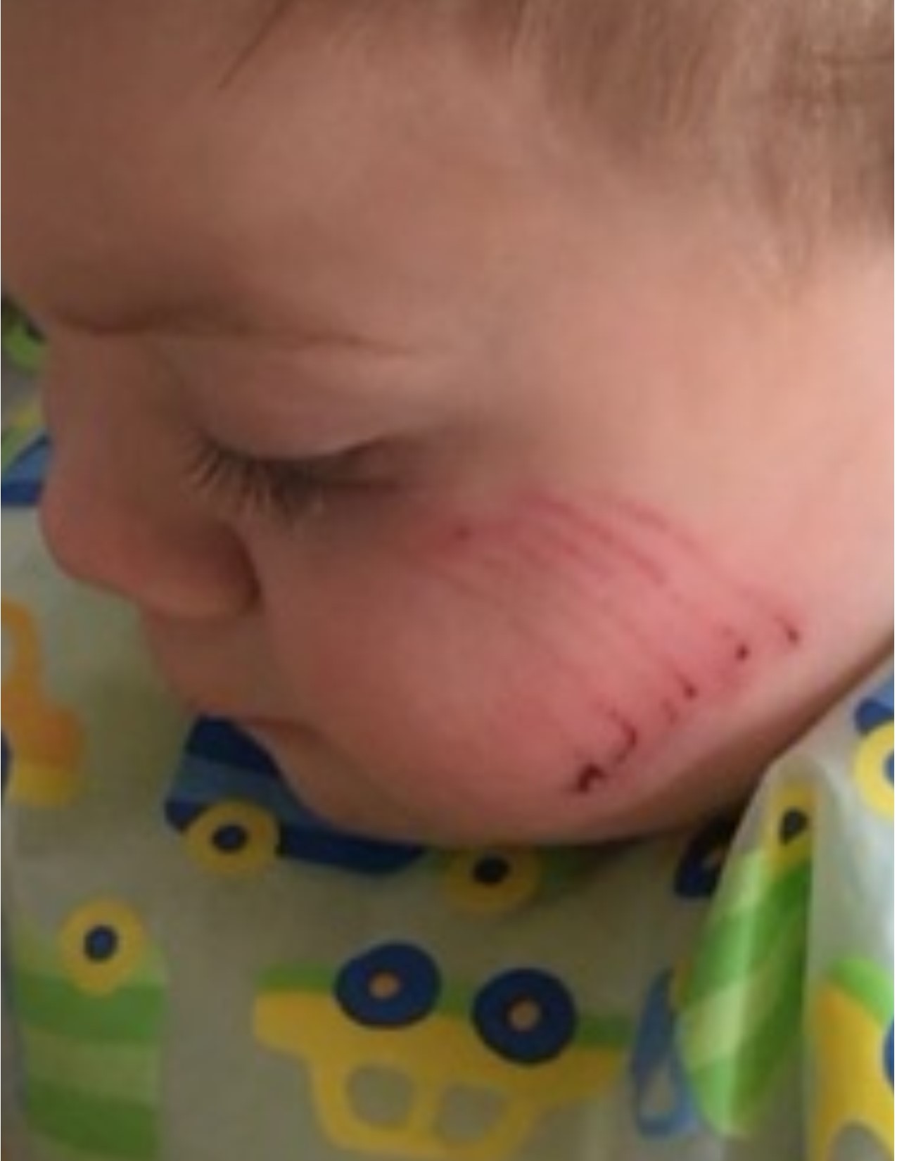 Fortunately, mommy already had her dollop of YL Animal Scents Ointment and a drop or two YL Lavender essential oil to mush together and dab on as soon as possible! No stinging, no tears. And checkout the next day closeup! Center scratches seen below have lifted! More hugs!